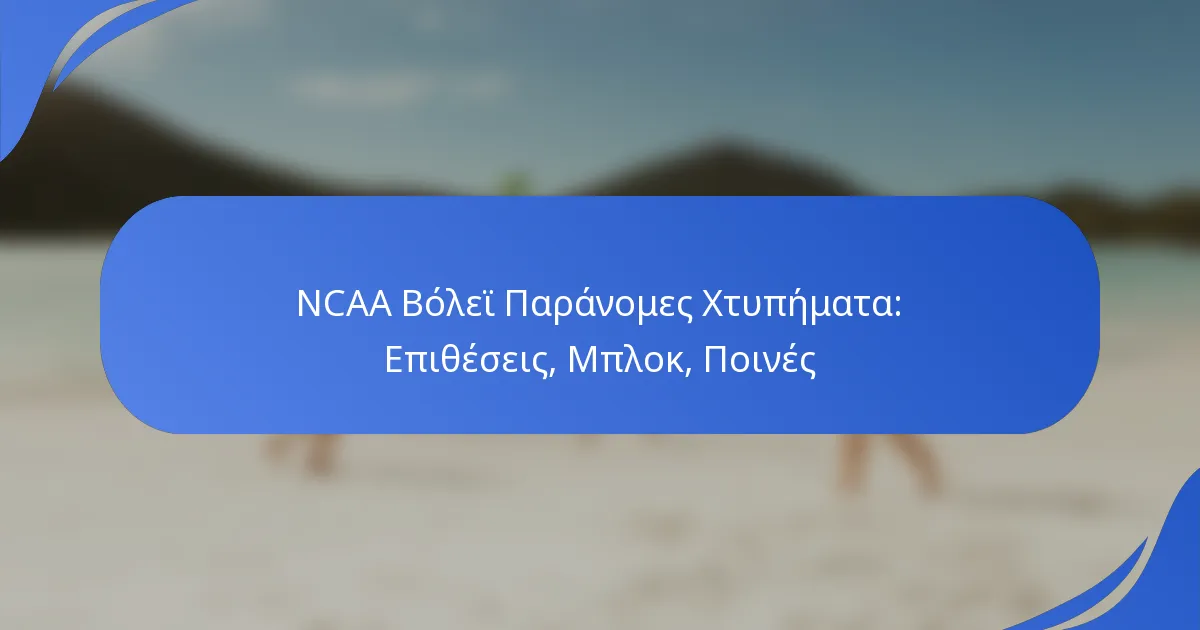 Τα παράνομα χτυπήματα είναι ενέργειες που δεν συμμορφώνονται με τους κανόνες του βόλεϊ NCAA, οι οποίοι έχουν σχεδιαστεί για να διασφαλίσουν δίκαιο παιχνίδι και ασφάλεια. Συνήθως περιλαμβάνουν ακατάλληλες τεχνικές ή παραβιάσεις της θέσης των παικτών κατά τη διάρκεια του παιχνιδιού. Η κατανόηση του τι συνιστά παράνομο χτύπημα είναι κρίσιμη για τους παίκτες και τους προπονητές ώστε να αποφύγουν ποινές.