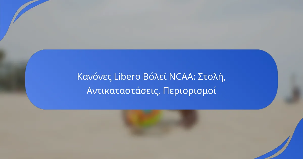 Ο λίμπερο είναι ένας κρίσιμος αμυντικός παίκτης στο βόλεϊ NCAA, εστιάζοντας στον έλεγχο της μπάλας και τις αμυντικές ικανότητες για να ενισχύσει την απόδοση της ομάδας. Οι κανονισμοί του NCAA επιβάλλουν συγκεκριμένες απαιτήσεις στολή για τους λίμπερο ώστε να διατηρείται η σαφήνεια κατά τη διάρκεια των αγώνων, ενώ οι μοναδικοί κανόνες αντικατάστασης τους επιτρέπουν να εισέρχονται και να εξέρχονται από το παιχνίδι χωρίς να επηρεάζουν τον αριθμό αντικαταστάσεων της ομάδας, διευκολύνοντας στρατηγικές προσαρμογές.